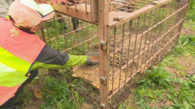 「さらに状況が悪化しないよう」クマ捕獲へ 畑に箱わな設置 周辺には住宅街や高校 山梨 2025年11月13日(木) 19:00 国内 12日午後4時半ごろ、甲州市塩山三日市場の畑でクマのものとみられる直径およそ10cmのフン2個がみつかりました。 雨宮恭太記者: 「檻の中にハチミツが入れられました。周辺にもまかれています」
