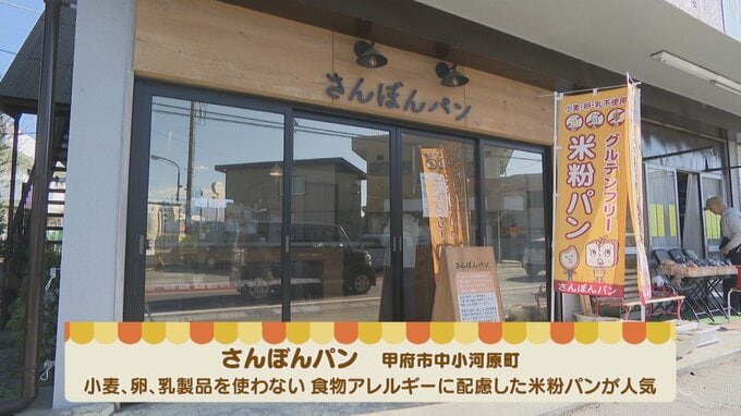リンゴの食パンにサツマイモの詰まったパン 秋の食材が詰まった米粉パン 食物アレルギーに配慮したパンで人気 甲府・さんぼんパン 2025年11月21日(金) 21:00 国内 話題・グルメ 甲府市中小河原町のさんぼんパンは、小麦、卵、乳製品を使わない、食物アレルギーに配慮したパンで人気のベーカリーです。 およそ30の商品のうち、この秋は3つの新作が登場!