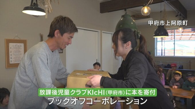 本などのリユース事業を行うブックオフが、甲府市の放課後児童クラブに約100冊の本を寄付しました。