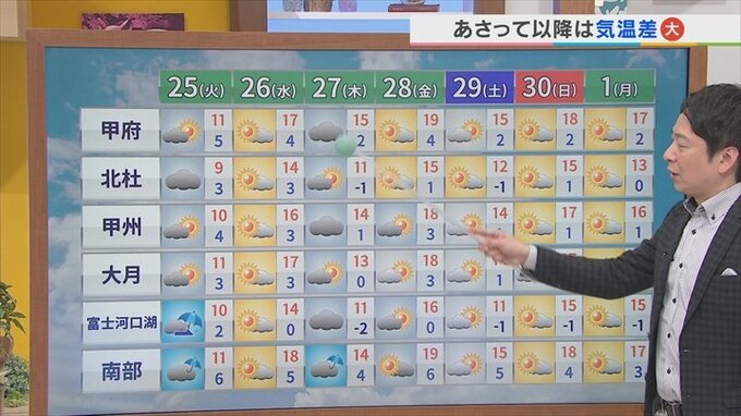 週末も天気の崩れはなさそうで、日曜日はまた暖かくなるので、今週は一番気温が下がるのはあすということになりそうです。