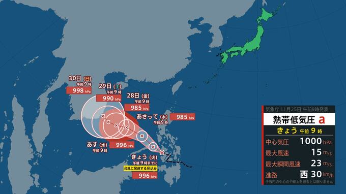 気象庁は25日にも台風に発達する見込みの熱帯低気圧aについて発表しました。