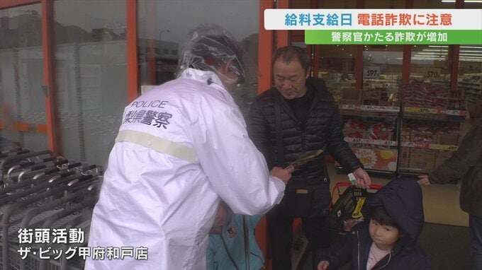 多くの企業で給料支給日のきょう25日、甲府警察署が電話詐欺被害への注意を呼びかけました。