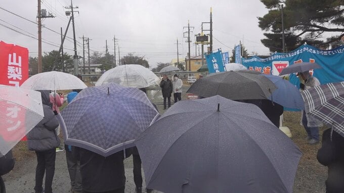 山梨県にある陸上自衛隊の北富士演習場で行われる沖縄駐留アメリカ軍による実弾演習に対して、抗議集会が開かれました