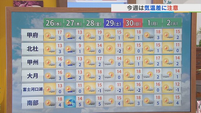 金曜日以降のポイントとしては、晴れて地上から熱が逃げる放射冷却が効きやすく、日差しの力で気温が上がりますから気温差大きくなる状況となりますので、寒暖差に要注意です。