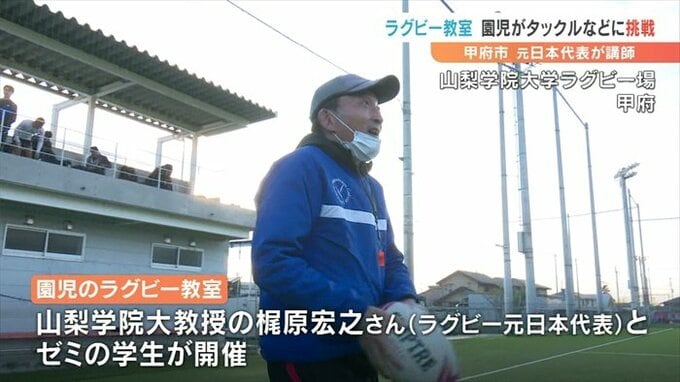 この教室は、山梨学院大学の教授でラグビー元日本代表の梶原宏之さんやゼミの学生が開いたものです。