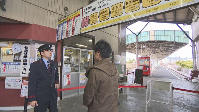 腹ごしらえがすんだところでJR吉原駅へ。岳南電車について職員の藤咲拓也さんに教えていただきました。