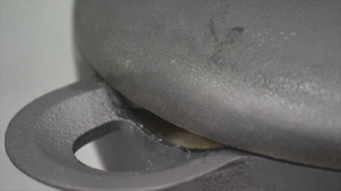一般的な鉄鍋は淵の厚さが4~5ミリ程度ですが、この鍋は厚さ1.5ミリ。薄くても保温性があり、同サイズの鉄鍋と比べて30%軽量化しています。