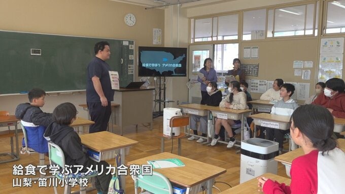 給食でこの料理を食べて、アメリカについて学ぶ授業が山梨市の小学校で行われました。