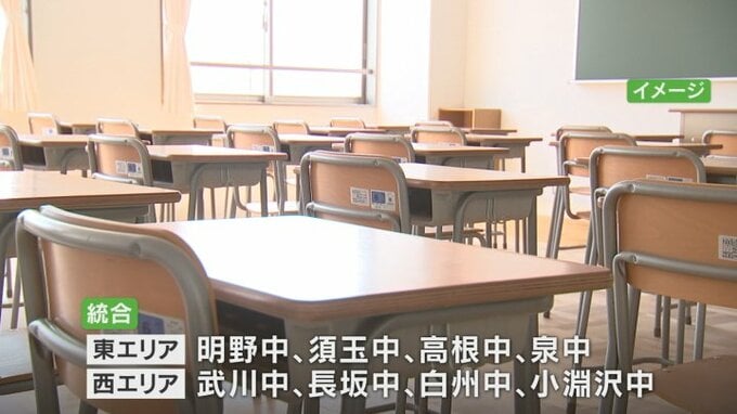 具体的には東のエリアでは明野中、須玉中、高根中、泉中が、西エリアでは武川中、長坂中、白州中、小淵沢中が統合されます。