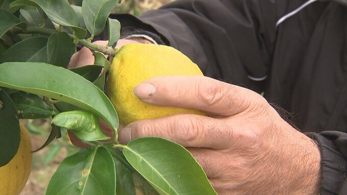 収穫を迎えたのは日向夏と、香りが強いリスボンレモンを掛け合わせた「璃の香」という品種。
