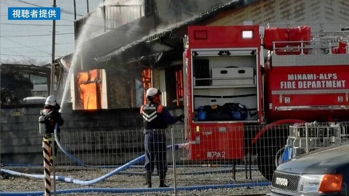 「家が燃えていて炎が見える」木造2階建ての住宅が全焼 60代女性が顔に軽いやけど 山梨・南アルプス市 2025年12月3日(水) 19:03 国内 3日午後、山梨県南アルプス市で住宅1棟が燃える火事があり、この家に住む女性1人がけがをしました。 住宅街に大きく立ち上る煙。 1階部分には赤い炎も見えます。