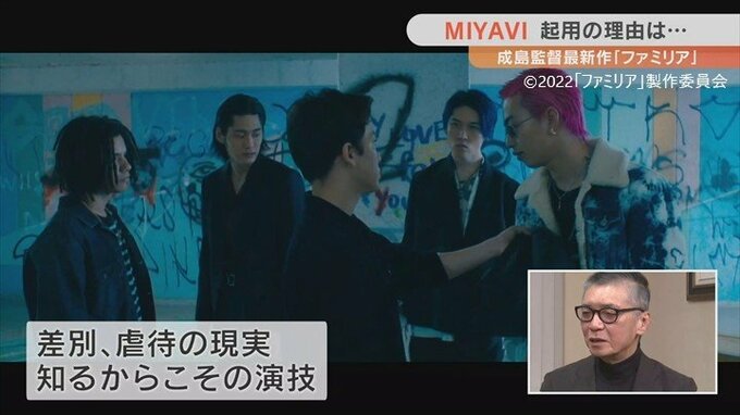 分断とか差別とか虐待、その残酷さをちゃんとわかっている人に演じてもらいたかった、いじめる側を。(MIYAVIさんは)世界中の難民キャンプを回って援助しているんですよね、音楽活動をして。本当にかなり危ない所まで行って。本当は心の中で、「どうかこういう事が世の中から無くなりますように」って願いながら 蹴りを入れいているんですよね.
