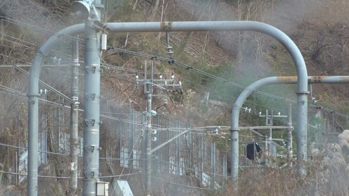8日午後1時前、JR中央線の甲斐大和駅と勝沼ぶどう郷駅の間で、下り特急列車の運転士から「サルのような動物が架線に引っかかっていて一時的に白い煙が見えた」と連絡がありました。
