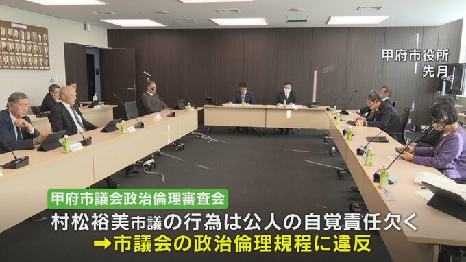 甲府市議会の政治倫理審査会は、村松裕美市議のSNSの行為は、公人の自覚と責任を欠き、市議会の政治倫理規定に違反すると意見集約しています。