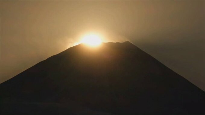 そして午前7時20分ごろ。富士山頂から朝日がゆっくりと姿を現しました。