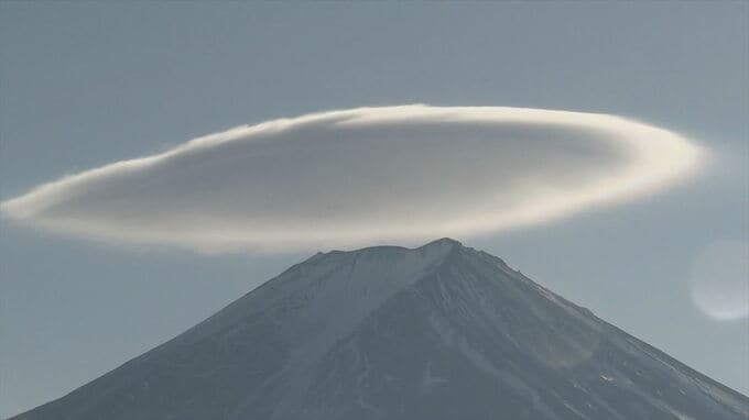富士山 周囲に雲なく、山頂にだけポッカリ 雲の淵は虹色のような色彩も 山梨 2025年12月11日(木) 14:28 国内 天気 甲府地方気象台によりますと、この雲は「傘雲」「レンズ雲」と呼ばれるものです。 「上空の空気が比較的湿っているとき、西から東に流れる空気が富士山にぶつかって上昇する際に雲が発生するようなイメージ」ということです。