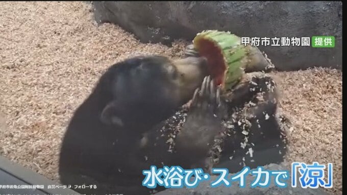 こうした中、甲府市立動物園では動物たちが水浴びやスイカで涼をとる姿も…