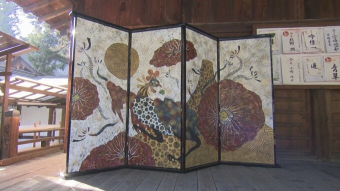 枯れた夫婦梅がつないだ縁 滋賀県の美術家が夫婦梅を描いた屏風絵を甲斐國一宮浅間神社に奉納 2025年12月11日(木) 20:10 国内 山梨県笛吹市の神社のご神木で今年10月に枯れてしまった夫婦梅がつないだ縁です。 滋賀県の美術家が夫婦梅を描いた屏風絵を完成させ、11日に神社に奉納しました。 笛吹市の甲斐國一宮 浅間神社に奉納された屏風絵です。