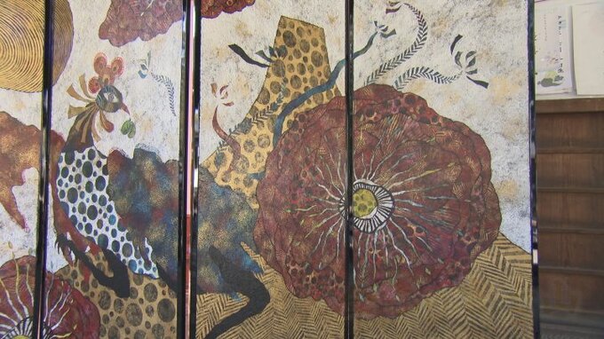 枯れた夫婦梅がつないだ縁 滋賀県の美術家が夫婦梅を描いた屏風絵を甲斐國一宮浅間神社に奉納 2025年12月11日(木) 20:10 国内 滋賀県の美術家maisさんが去年、神社を訪れた際に夫婦梅に心を打たれたことがきっかけで、縦170cm、横およそ3mの屏風絵に大輪のウメの花と、金色の富士山、そして夫婦梅の実をくわえる鳳凰を描きました。