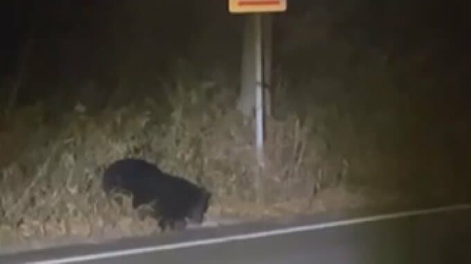 【連続画像】クマが道路沿いに出没 何かを食べていたか 体長約1メートル 近隣の学校は部活動を中止、下校時間を早める 山梨・北杜市 2025年12月12日(金) 19:31 国内 落ちている何かを食べているようにもみえます。