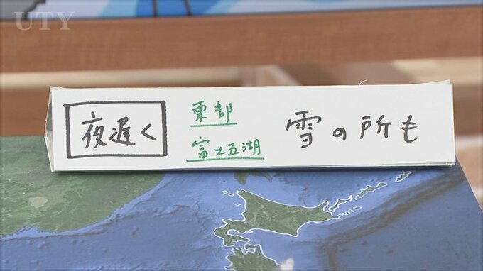 最新の予報を見てみると、あすの夜は東部・富士五湖は気温が低いので雨ではなく
