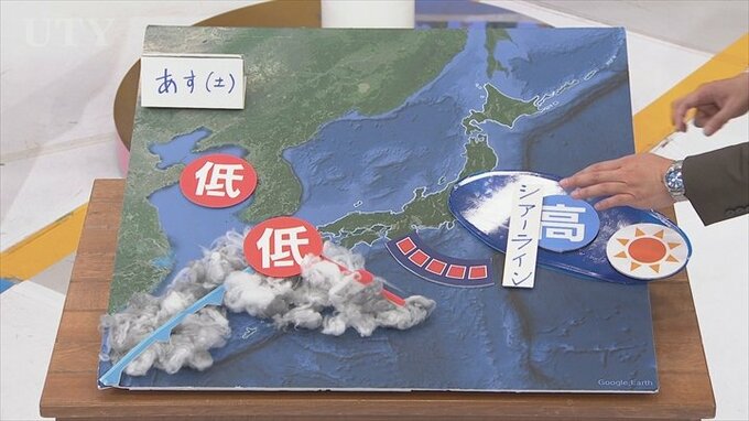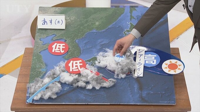 このシアーラインには何ができるかというと、雲が広がりやすくなりまして、さらに雨が降るんです。