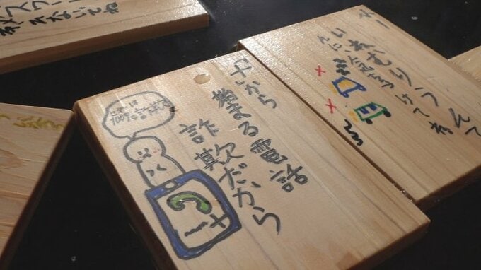 今年は小学生や園児が「+から 始まる電話 詐欺だから」や、「信号を守ろう」などと書かれた木札を浮かべ、訪れた人の防犯意識などを高めました。