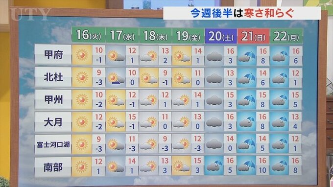来週の月曜日にかけてもぐずついた天気が続きますので、穏やかな冬晴れでの洗濯外干しはあすが一番おすすめとなる見込みです。