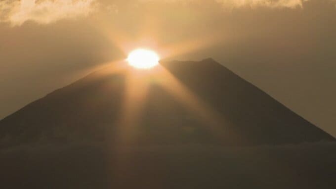 富士川町高下からは1月上旬までこのダイヤモンド富士を見ることができます。
