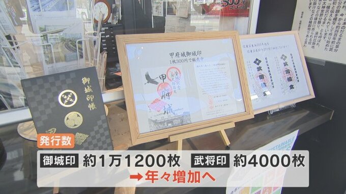 11月までに発行した数は御城印はおよそ1万1200枚、武将印はおよそ4000枚で、年々増加しています。