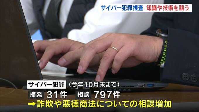 県警によりますと2022年10月末までに県内で摘発されたサイバー犯罪は31件、相談件数は797件と去年を上回るペースで推移していて、主に詐欺や悪徳商法についての相談が増えているということです。