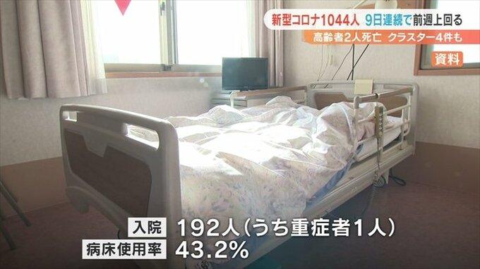 また火曜日から1000人以上の日が続いています。県内の入院患者は192人で、重症者は1人、病床使用率は43.2%となっています。