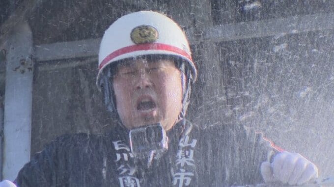 「地区の安泰と部員の健康を祈願」 寒さの中、放水に耐える 大正時代から続く消防団の伝統の出初式 2026年1月5日(月) 17:15 国内 山梨市の一町田中地区で行われた水かけ出初式です。 これはかつて水害に悩まされてきたこの地域で水への恐怖心を取り払おうと大正時代から続いている伝統行事です。