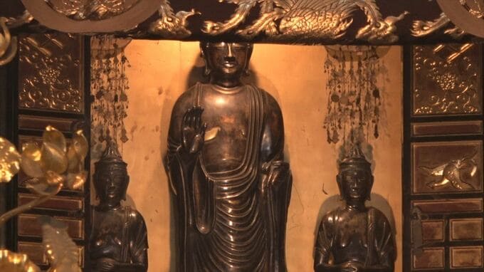 7日は約40人が参列し、本尊の御開帳が行われました。