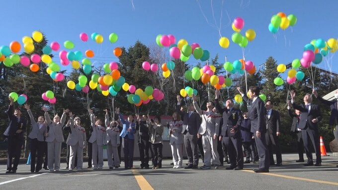 式のあとは環境に配慮した風船200個を空へ飛ばし、更なる飛躍を誓っていました。