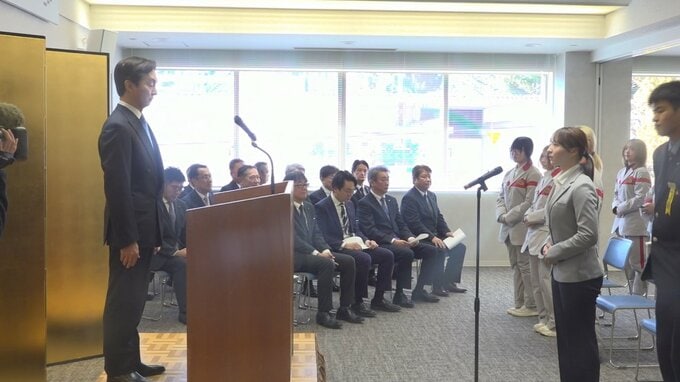 7日は今年度20歳を迎える17人が参加し、代表して富士急行スケート部の松島未来さんが「より高い目標と強い意志を持ち日々努力します」と誓いの言葉を述べました。