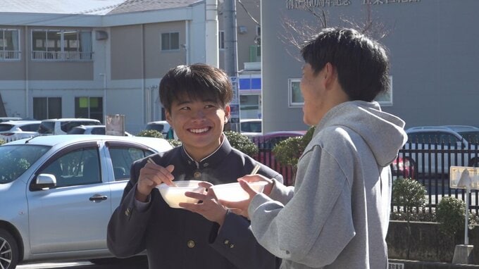 生徒たちは冬の日差しの中、暖かい雑煮を食べて今年一年の活躍に向けて力をつけているようでした。
