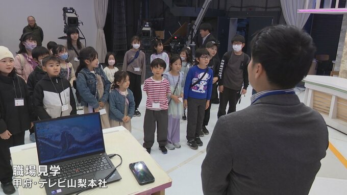 甲府市内の小学生が「UTYのスタジオ」を見学しアナウンスやカメラの操作を体験しました。