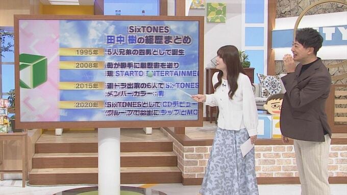 SixSTONES 田中樹さん 「メンバーと付き合うなら?」『オレ』 デビュー6周年記念 6問6答 初のベストアルバム「MILESixTONES」発売記念で山梨に 【文字起こし全文】 2026年1月21日(水) 11:00 国内 暮らし・マネー 小田切アナ: 「こちらに田中樹さんの…(タッチパネルモニターをめくる)」 田中樹さん: 「あ、すげえ!これ反応するんですか?」 小田切アナ: 「そうなんです、反応するんです」 田中樹さん: 「へえ~!すげえ!」