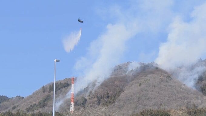「ヘリコプターによる消火活動が行われていますが、火の勢いは衰えていません」
