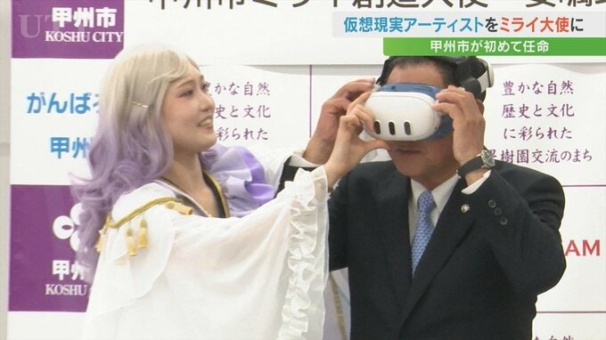 国際的なXRアーティスト・せきぐちあいみさん ミライ創造大使に任命 VR技術で文化財の魅力発信 山梨・甲州市 2026年1月13日(火) 20:00 国内 暮らし・マネー 母親が甲州市出身で先祖が甲斐武田氏の家臣=三枝氏であることから甲州市にゆかりがあり、13日は専用のゴーグルを鈴木市長に渡し、制作した甘草屋敷の仮想現実の世界を体験してもらいました。 甲州市 鈴木幹夫市長: 「おおー。甘草屋敷にいっちゃったよ」