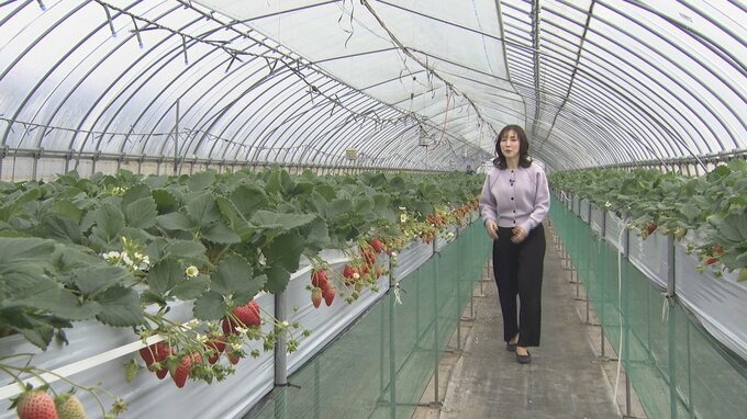 糖度が高い「章姫」や、香りが良く果汁が多い「紅ほっぺ」など6種類が栽培され、食べ比べができます。こちらでは今月10日、今シーズンのイチゴ狩りが始まりました。