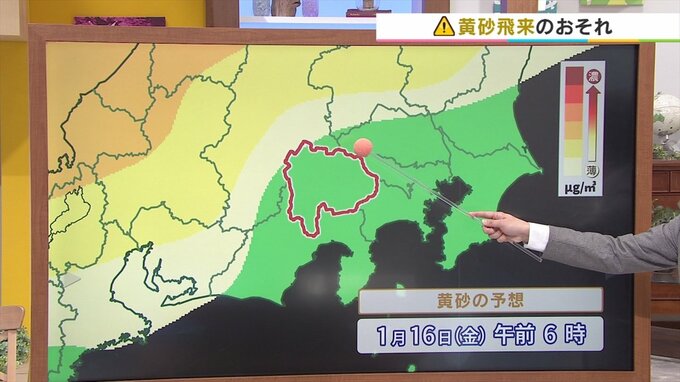 黄砂の様子を見ていきますと、明日の午前6時の段階では山梨県にまだかかっていませんが、もう迫ってきている状況なんです。