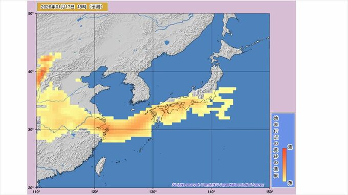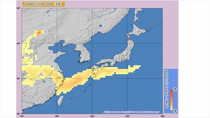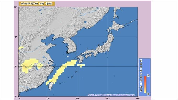 そして18日03時にはほとんどが太平洋側に抜け、四国の一部と九州南部などに黄砂が残る予測となっています。
