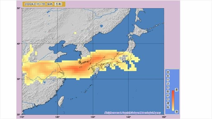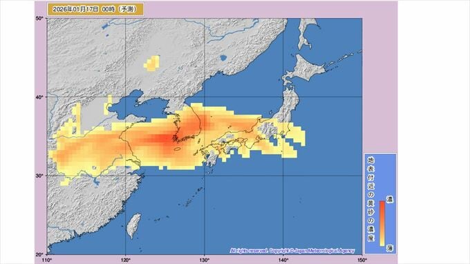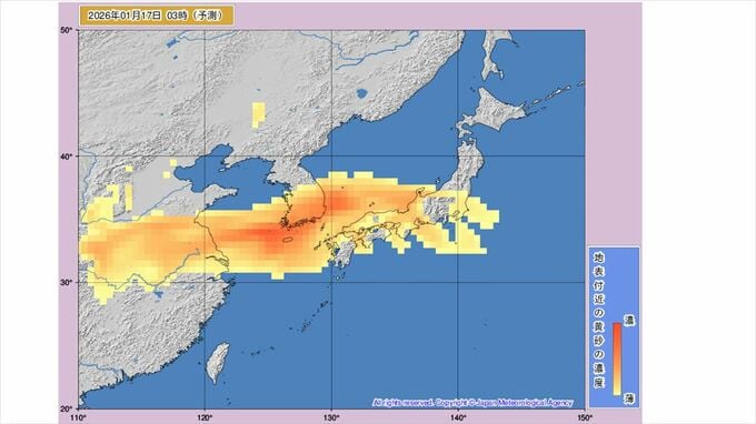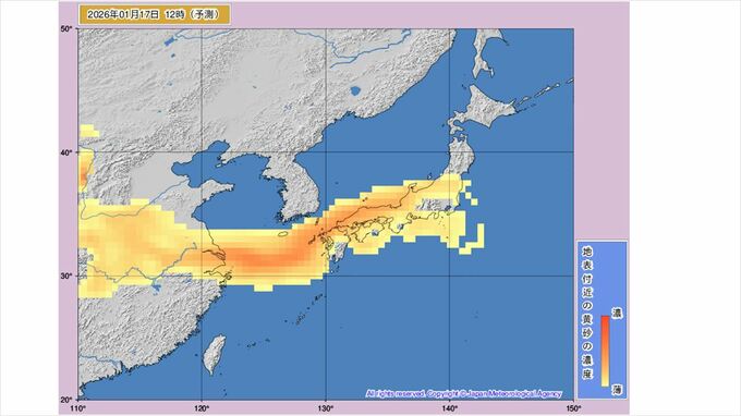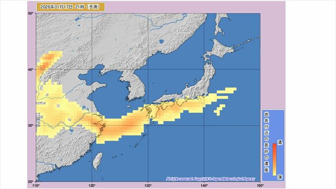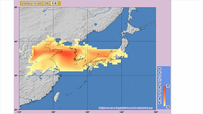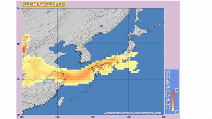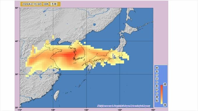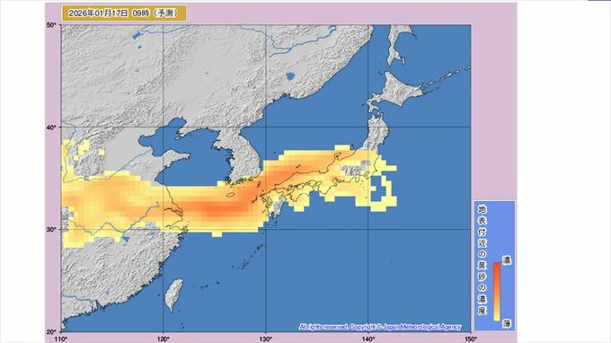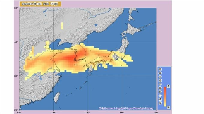 気象庁によりますと黄砂が16日から17日にかけ、日本列島にかかってくる予測になっています。
