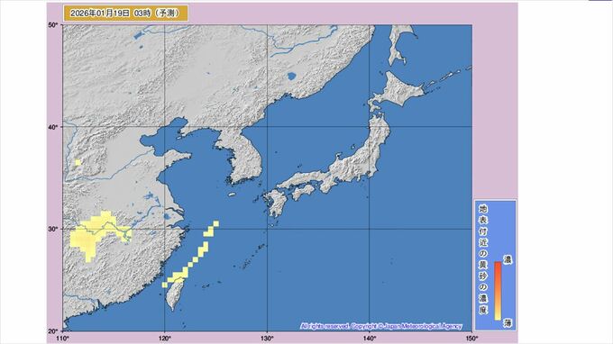 さらに19日03時には黄砂は日本列島にかかっていない予測となっています。