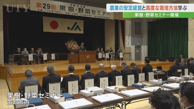 農業の安定的な経営と高度な栽培方法を学ぶセミナーが山梨県笛吹市で開かれました。