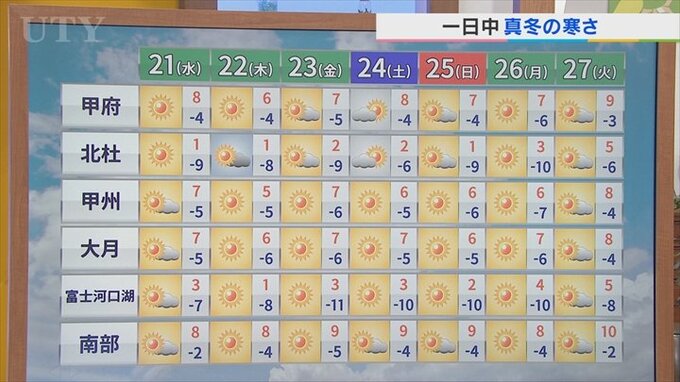日中の最高気温も甲府はこの時期大体9℃前後なんですが、それよりも下回る形となりそうです。