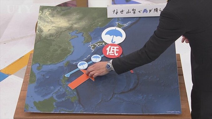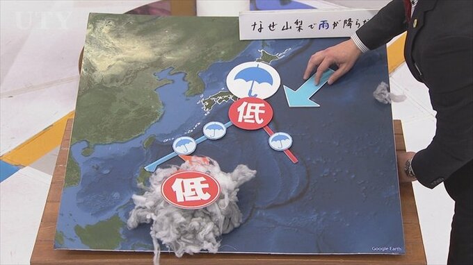 山梨でこの時期に雨が降るのは日本の南を通過する南岸低気圧によるものなんです。