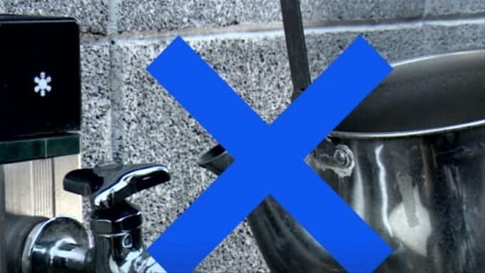 万が一、水道が凍結した場合は、タオルをかぶせて40度前後のぬるま湯をゆっくりかけるか、自然解凍を待つことになります。